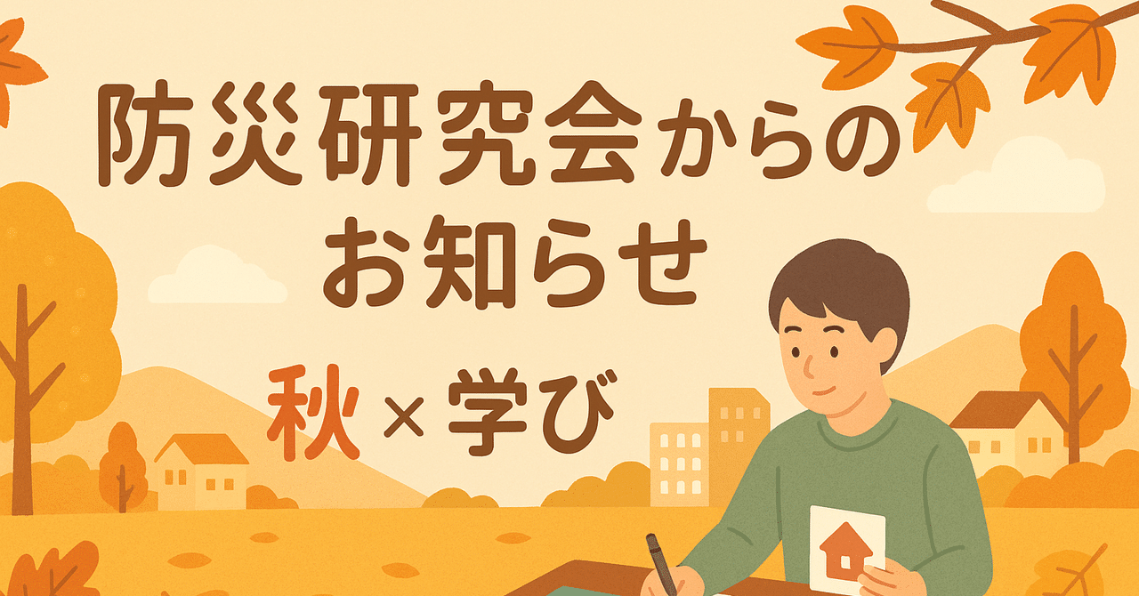 こんにちは。 今日は、私が所属している「防災研究会」の最近の活動についてお伝えします。 (注:本来は『防災研究会』の前に自治体名が付きますが、居住地の特定に繋がってしまうので今回は伏せさせていただきます。ご興味のある方は私までご連絡いただけ...